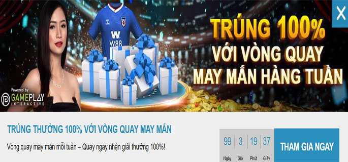 Trúng thưởng 100% vòng quay may mắn tại W88